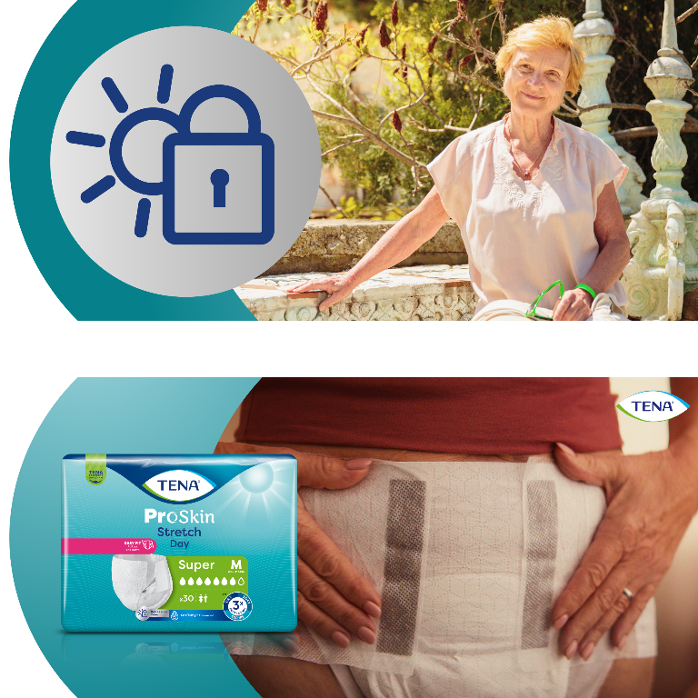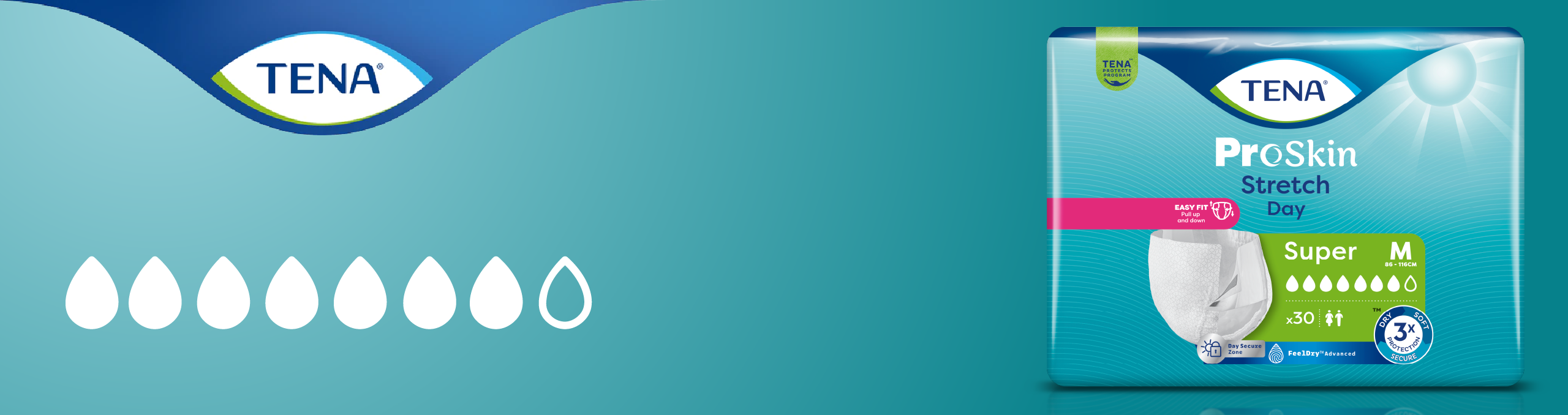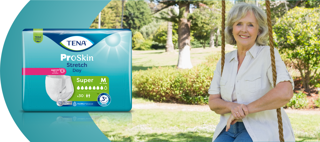 TENA Stretch ProSkin Super Day chronią przed przeciekami, nieprzyjemnym zapachem i wilgocią.
